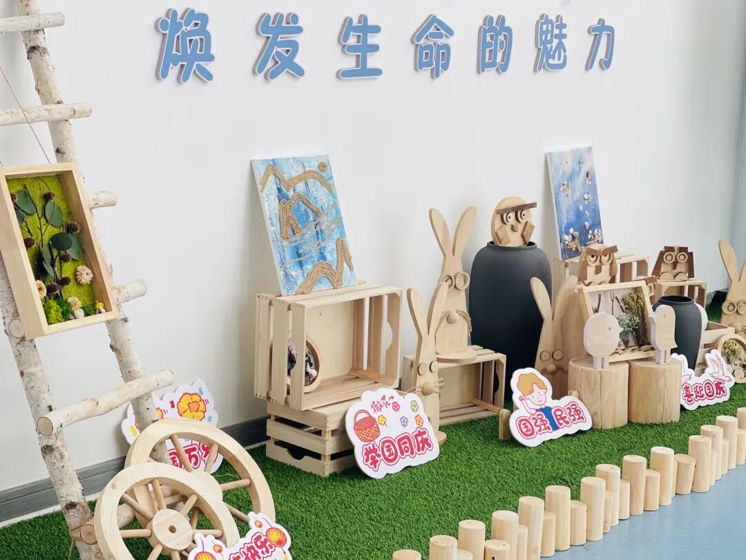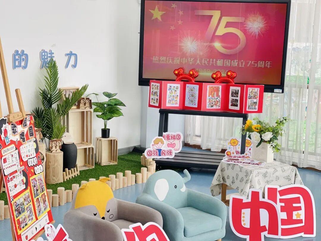 瞧!老师们和小朋友们用灵巧的双手精心打造了充满节日氛围的爱国主题展,小朋友们在浓厚的节日氛围中,领略祖国的伟大,种下爱国的种子。