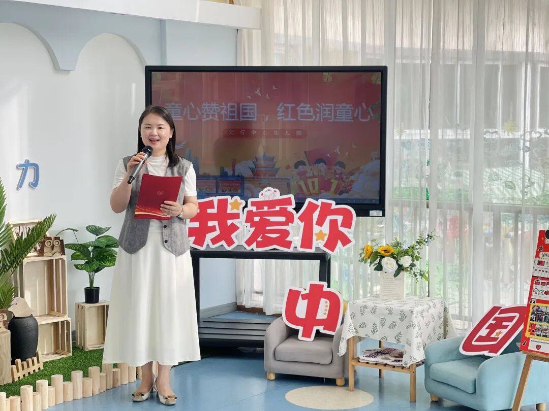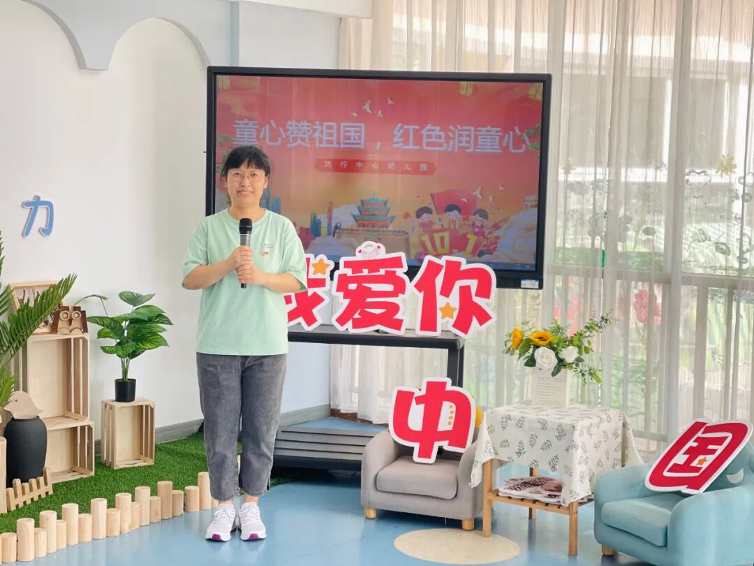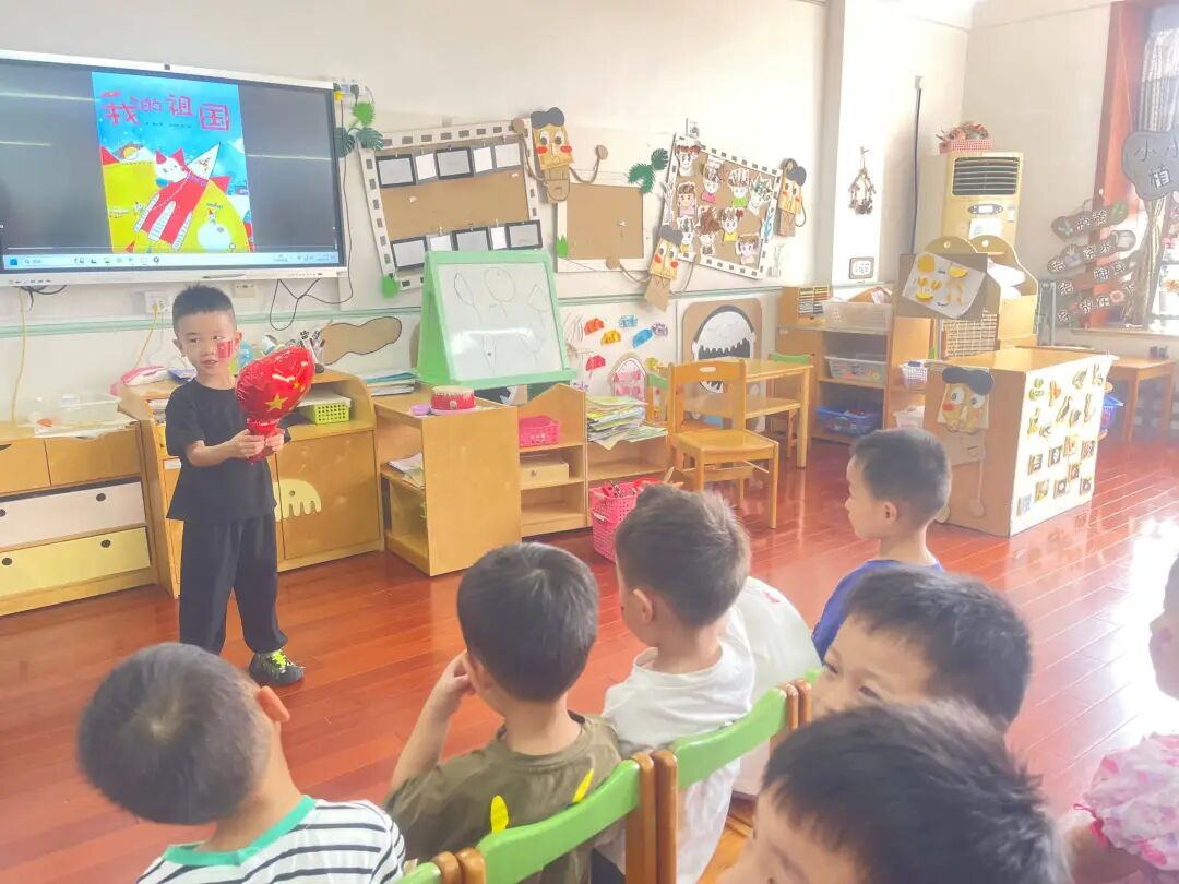 园长刘老师以一首赞祖国的诗歌,带领孩子们开启深度“红色之旅”,启蒙幼儿心智,增强幼儿文化自信,树立认真学习、长大建设祖国的理想。
