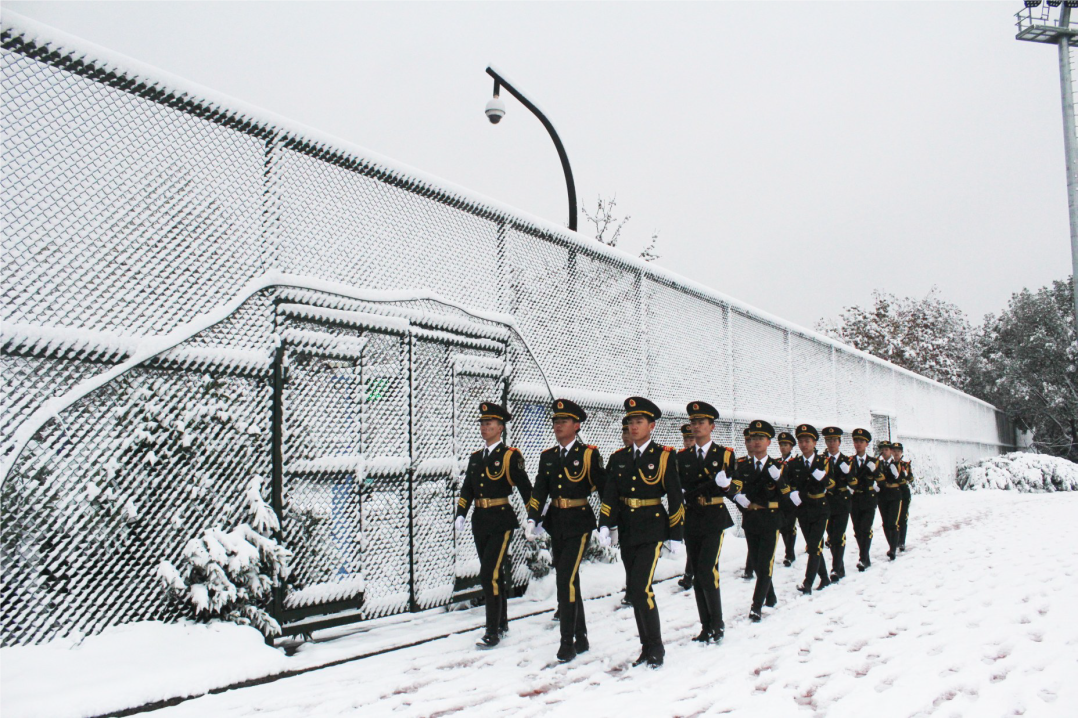 2018年12月9日,浙江大学国旗仪仗队在雪中举办纪念“一二·九”运动主题升旗仪式。