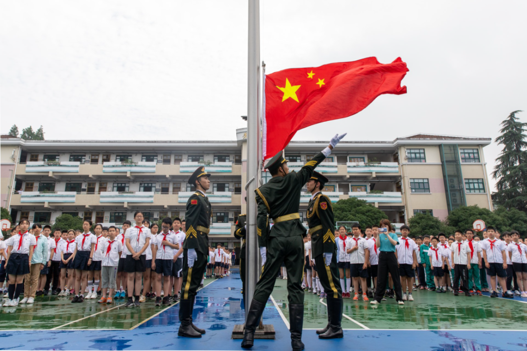 2021年6月21日,浙江大学国旗仪仗队受邀在浙江大学附属小学举行升旗仪式。