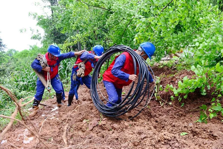7月25日,国网四川电力(成都邛崃)连心桥共产党员服务队紧急出动,徒步前往平乐镇流马社区抢修现场,经过6小时的抢修,该线路于当日17时恢复供电。