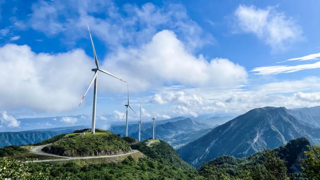 走进丰都五洞岩风电场,56座高耸的白色风机立于连绵起伏的山坡上,巨大的三叶片随风转动。在这里——重庆地区最大的山地风电项目,绿色电力通过电网源源不断输入千家万户。