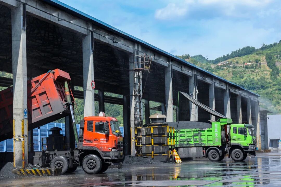 在习水能源公司卸煤沟,一辆辆红色和绿色的运煤车来回穿梭,一块块黑金源源不断地涌入卸煤沟仓内,通过叶轮给煤机拨煤至输煤皮带,平均每天向锅炉提供“口粮”1.5万吨,确保公司两台660MW机组满负荷稳定运行。