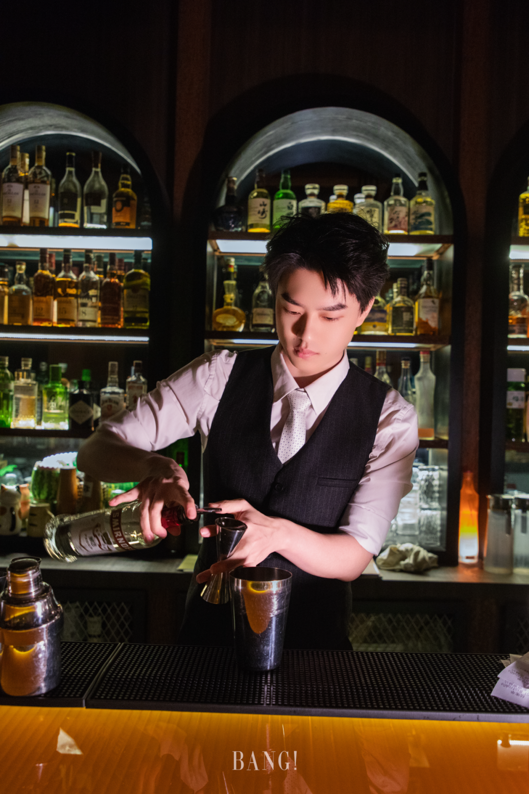 三个吧台巧妙布局于前厅、主厅及隐秘Bar之内,为宾客提供了多样化的社交空间。琥珀色的酒墙在暖黄灯光的映照下散发出诱人的光泽,让人在不经意间沉醉于这份微醺的美好之中。