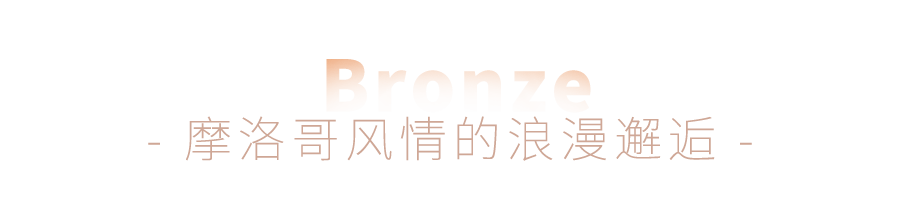 踏入Bronze,瞬间被一抹温暖的橘色温柔拥抱。穹顶之下,拱门优雅,花瓷砖铺就的地面仿佛引领你穿越时空,触碰那些关于摩洛哥的梦幻篇章。