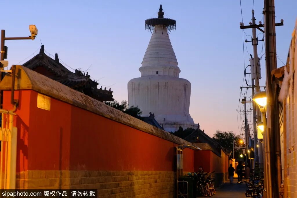 白塔寺宫门口东西岔街区是有社区商业基础的胡同街区,最适合夜游散步。走三两步,就能发现一家有趣的小店。这里同时也是许多网红店的聚集地,“上房揭瓦看白塔”火爆社交平台。