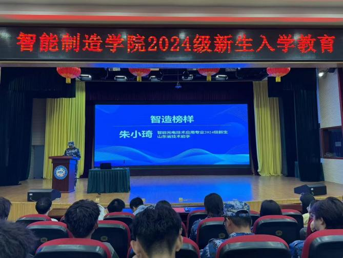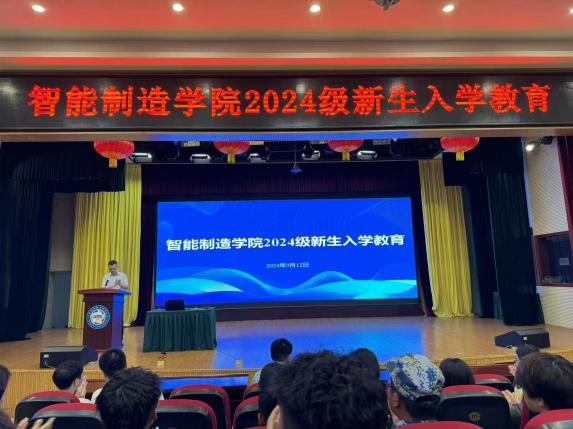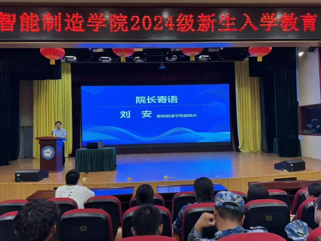 ▲智能制造学院党总支副书记李伟为新生致欢迎词