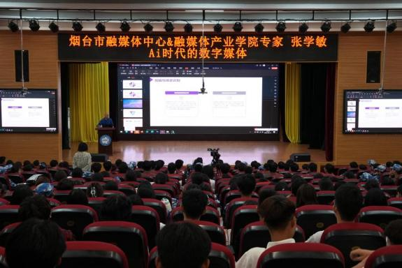 ▲烟台市融媒体中心专家张学敏为新生讲解AI时代的数字媒体