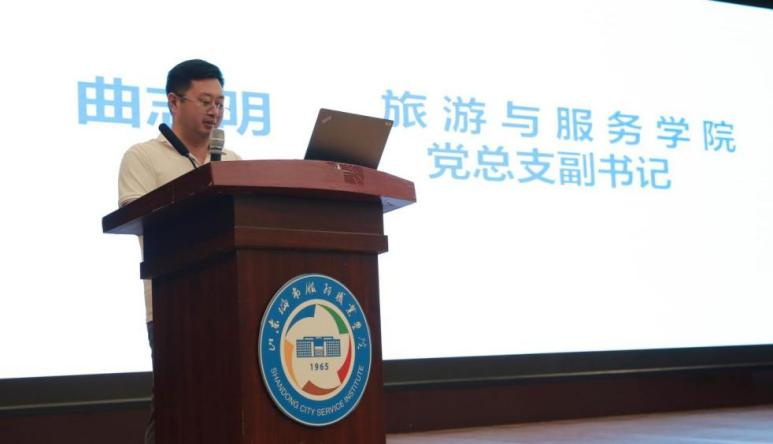 ▲旅游与服务学院党总支副书记曲志明代表学生管理团队讲话