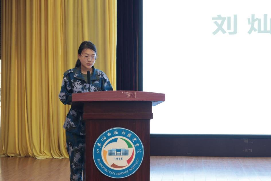 ▲国际邮轮乘务管理专业新生代表刘灿发言