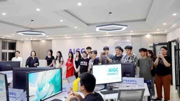 ▲融媒体产业学院组织学生参观实训基地及学生作品