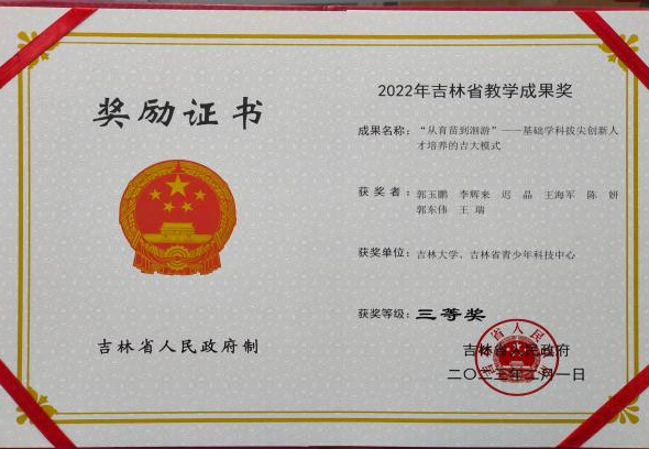 大学生学科类竞赛是课内教学的有效延伸,也是人才培养效果的有效检验。2021年以来,本科生在国内外学科顶级赛事如国际遗传工程机器大赛、国际大学生生物分子设计大赛、全国大学生化学实验创新设计竞赛上,获得金奖1项,银奖2项;特等奖4项,一等奖8项;一位本科生以第一作者身份在化学类顶级期刊发表文章(J.Am.Chem.Soc.2023,145,8540-8549)。化学竞赛和课外学术研究活动激发了学生学习的主观能动性,培养了学生创新实践能力。同时,促进了理论和实验教学方式改革和教学内容更新,加强理论和实验、课内和课外,教学和科研的融合。