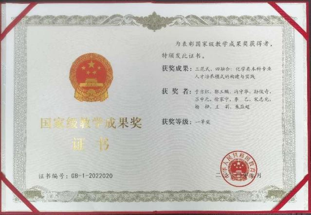 由学术造诣高和教学能力强的教师共同打造化学学科“无机化学”等核心课程群;构建一阶“能教课”、二阶“教好课”、三阶“会教课”的教师教学能力提升与职业发展新模式,激发教师夯实教学基本功、优化教学内容、创新教学方法的源动力,为高水平教学团队组建与可持续发展、育人能力持续提升提供坚实保障。化学教师团队获评首批“全国黄大年式教师团队”;1人获评全国模范教师、1人获评国家教学名师,2人获批省级教学名师,2人获评宝钢优秀教师;“无机化学”“物理化学”“化学基础和综合实验”等8门课程获评国家级精品课、精品资源共享课、国家一流课程。2021年以来教师发表中文核心