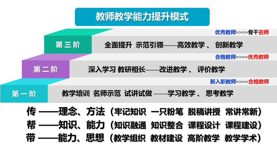 2.构筑“三阶式”的教师教学能力提升与职业发展的一体化新模式