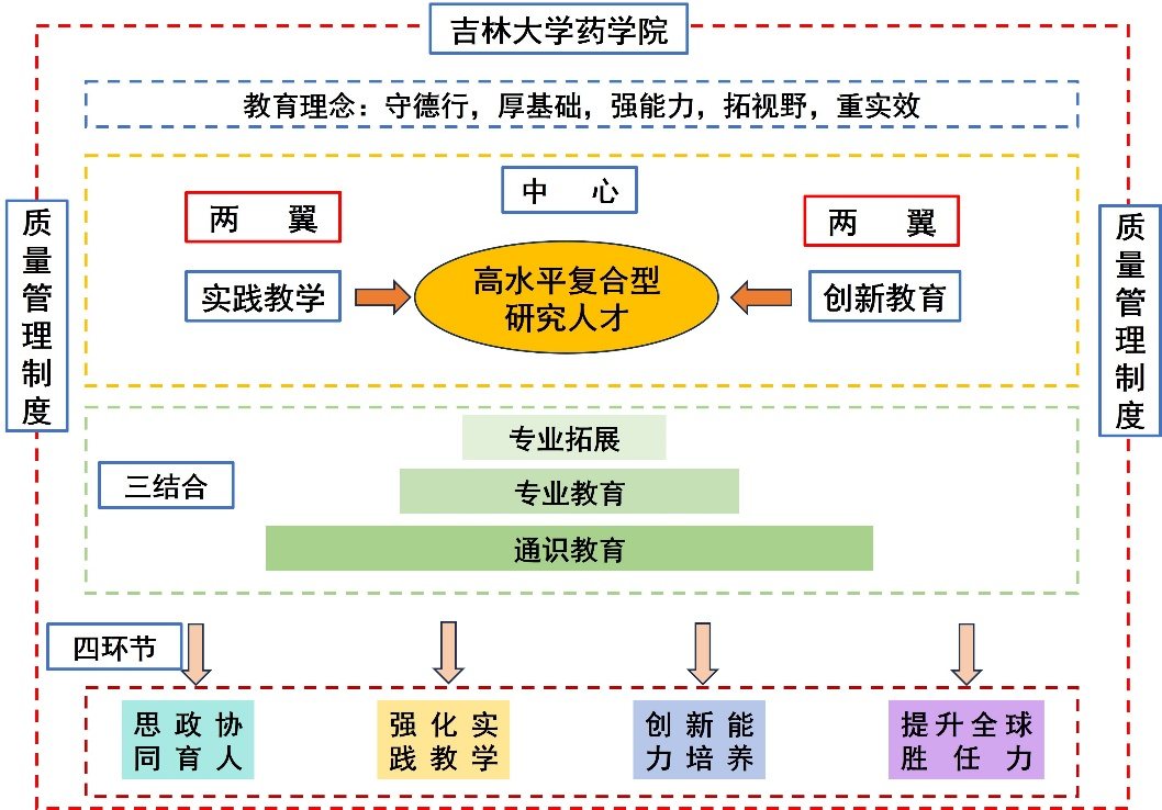 学院在学校的领导下,深化人才培养模式改革。学院秉持“守德行,厚基础,强能力,拓视野,重实效”的教育理念,初步形成“一个中心两翼三结合四环节”的发展模式,即坚持以培养高水平复合型药学研究人才为中心,以创新教育和实践教学为两翼,结合通识教育、专业教育和拓展教育三位一体,通过思政协同育人、强化实践教学、创新能力培养及提高全球胜任力四个环节培养优秀的药学人才。学院将继续紧密围绕国家需求和行业发展趋势,不断探索创新,优化教育资源配置,加强师资队伍建设,优化人才培养机制。