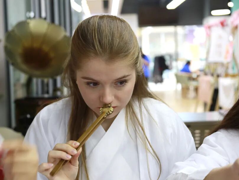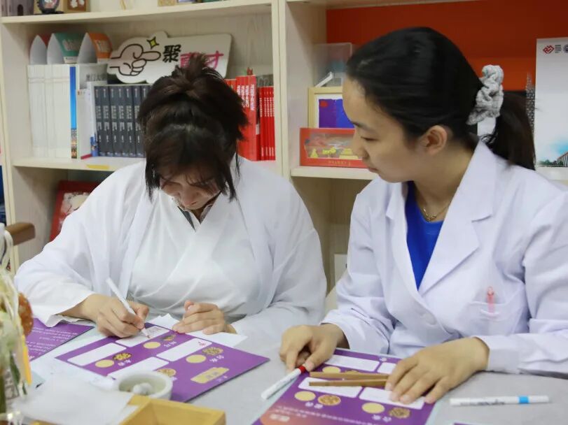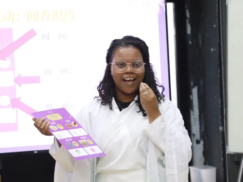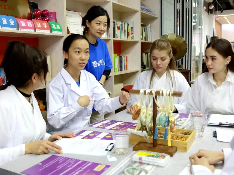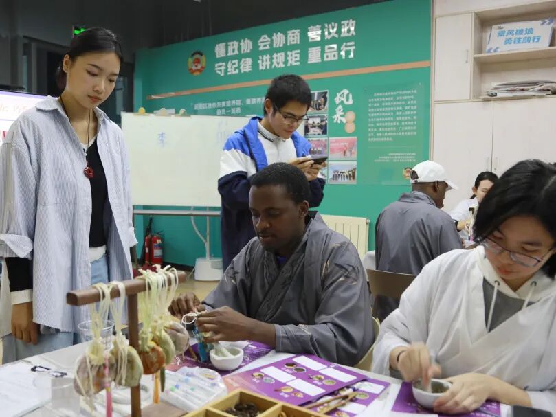 中药碎片拼图、情景模拟中医问诊、制作专属药香香囊……活动中,20名朝阳区外籍青年与对外经济贸易大学相关专业学生在互动、实操与展示分享中体验中医药养生文化魅力。