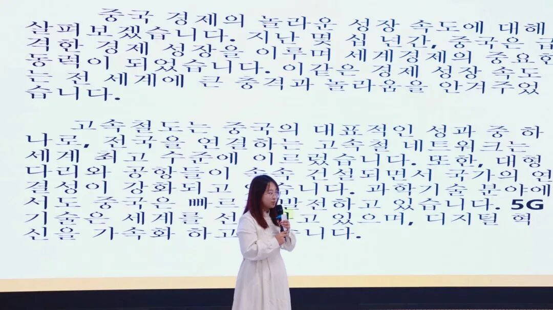 活动伊始,主持人宣布比赛流程及其注意事项。随后,由八位选手依次带来精彩的演讲。她们通过流利的韩语、精彩的表达和独特的视角,向观众展示了中国的魅力与风采,给观众们带来了一场绝佳的演讲盛宴。