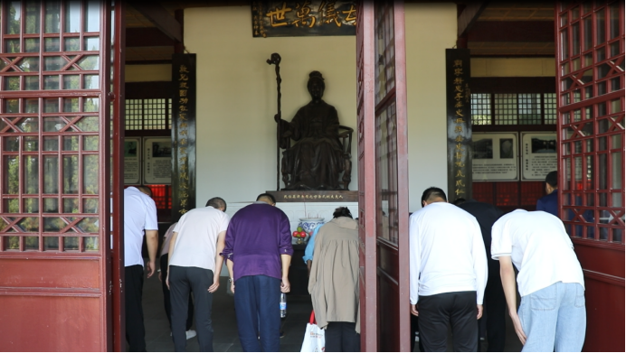 随后,教师一行来到了岳母墓,向中国“四大贤母”之一的岳母鞠躬致敬。教师们通过“精忠报国”的故事深切感受到了一代贤母对于儿子的爱国教育及殷切期望,大家对岳母以身垂范教导岳飞胸怀民族大义的钦佩和敬仰之情油然而生。