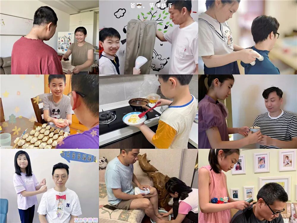 孩子们在父亲节当天,纷纷用实际行动表达自己的感恩、孝顺之情,为父亲泡上一杯茶、给爸爸敲敲背,点滴的行动沁润心田。