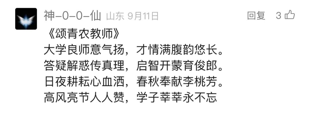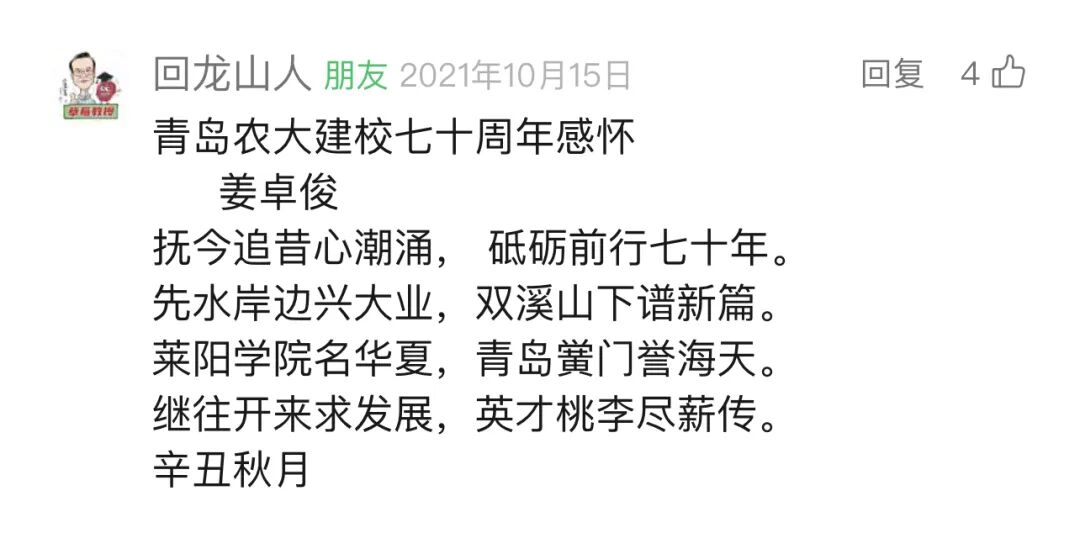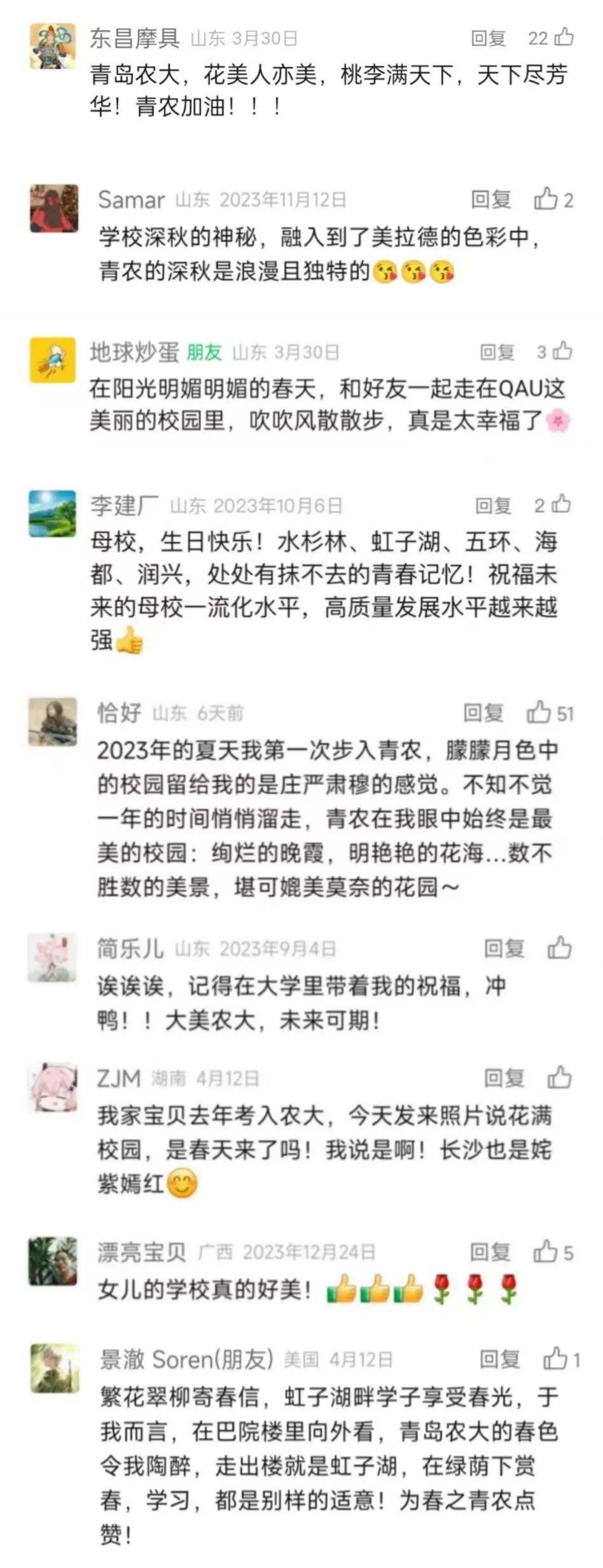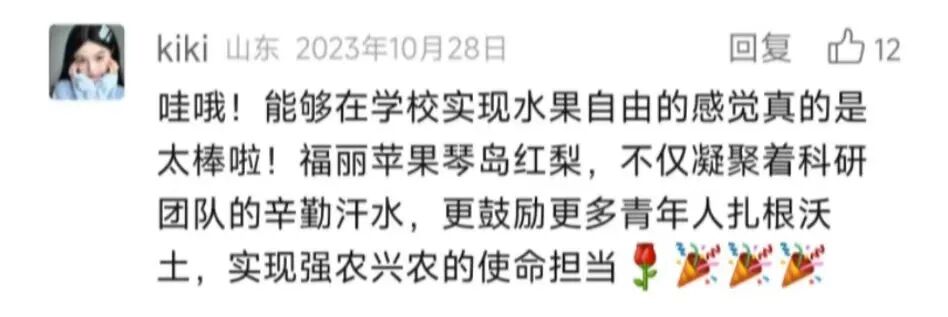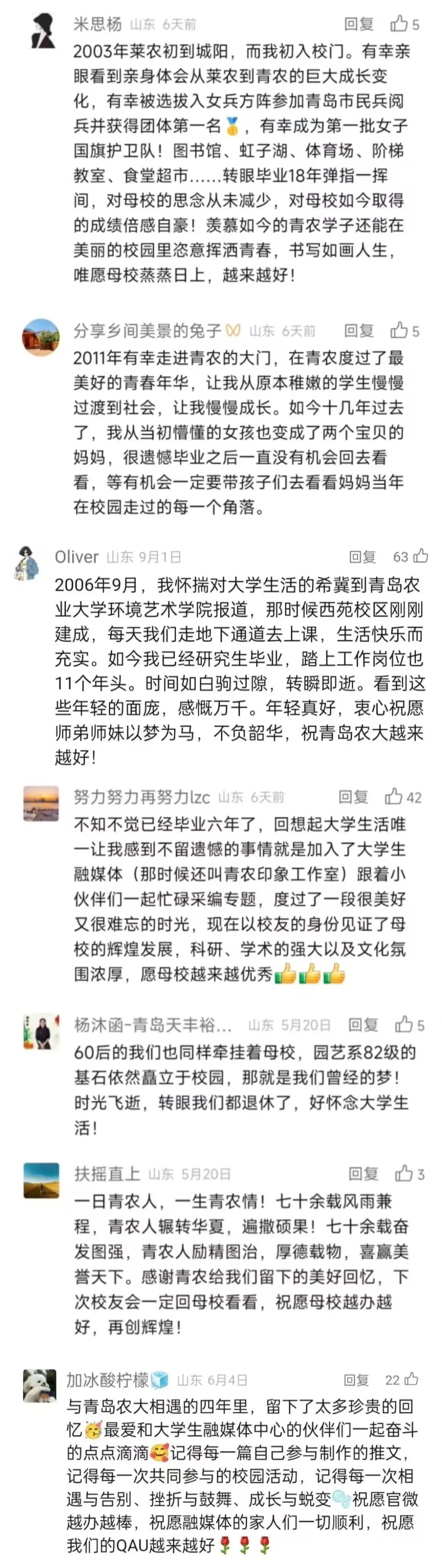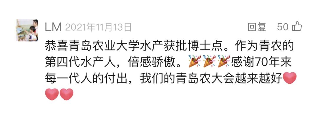 评论来源:青岛农业大学微信公众号师生、校友、家长粉丝