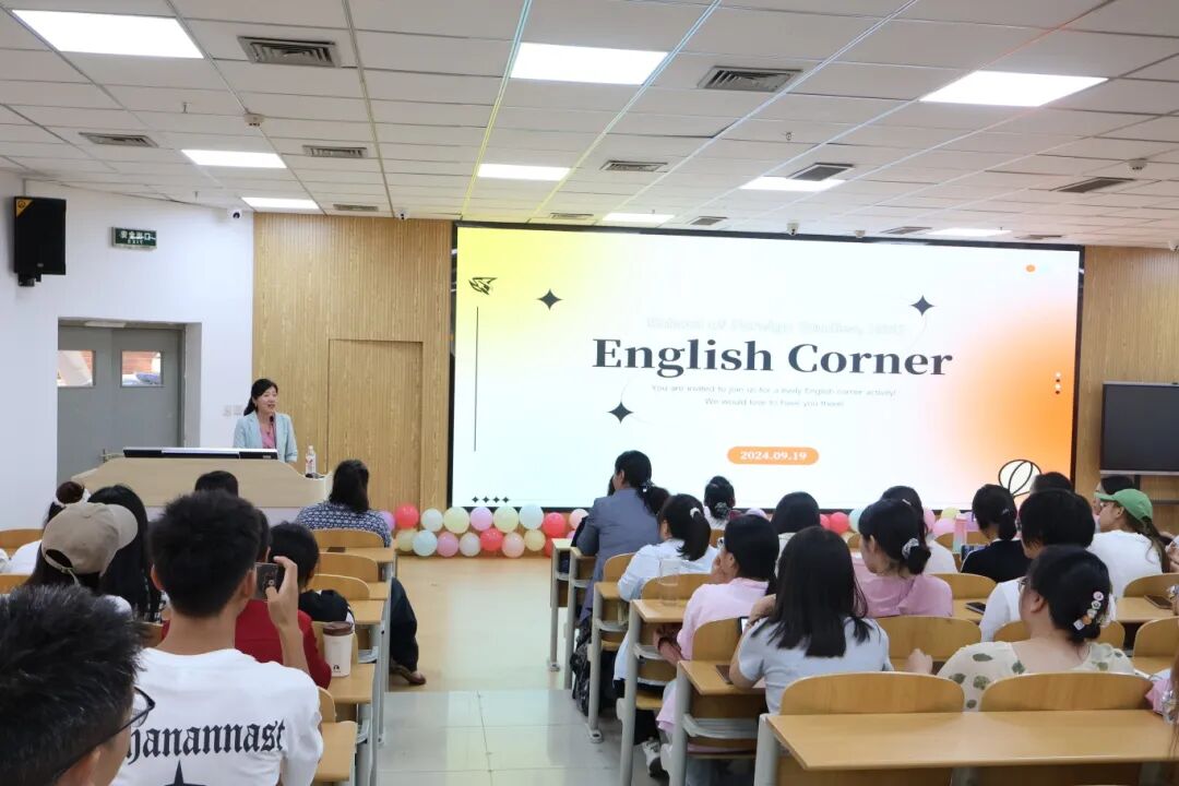 本学期首场英语角活动于9月19日下午在外国语学院113教室和一楼大厅举行。外国语学院院长兼公共外语教学部主任叶慧君、公共外语教学部副主任高华、英语系主任贺秀明老师、外籍教师Robyn、外籍教师Isabel以及外国语学院和公共外语教学部的部分骨干教师出席了本次活动。活动由外国语学院副院长穆军芳主持。活动分为英语风采秀和自由交流两个环节。自由交流环节在外国语学院一楼大厅开展,同学们围绕海报上的话题结组进行英语讨论,并与外籍教师互动交流,现在气氛活跃、热烈。这种轻松愉悦的交流氛围不仅提升了同学们对社会热点问题的理解力和表达力,还增强的同学们讲好中国故事,做好中西文化传播者的使命感和责任感。
