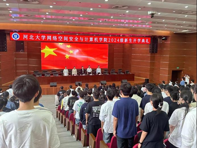 9月10日,网络空间安全与计算机学院在七一路校区图书馆报告厅举行 2024 级新生开学典礼暨入学教育。学院党委书记马洁、院长杜瑞忠、副院长蔡红云、副院长邢红杰、2024 级新生班级辅导员以及全体 2024 级新生参加典礼。典礼由学院党委副书记马潇颖主持。学院党委书记马洁致辞,希望同学们能够继承和发扬学院的优秀传统,在更加宽广的舞台上笃学力行,矢志求真,踔厉奋发。活动现场通过新生发言、入学宣誓等多种形式引导学生爱校荣校,努力学习,奋发向上。典礼结束后,院长杜瑞忠教授为 2024 级全体学生进行入学教育,引导同学们关注前沿技术,主动担当作为,肩负起建设网络强国的重任,为筑牢国家网络安全贡献出自己的青春力量。