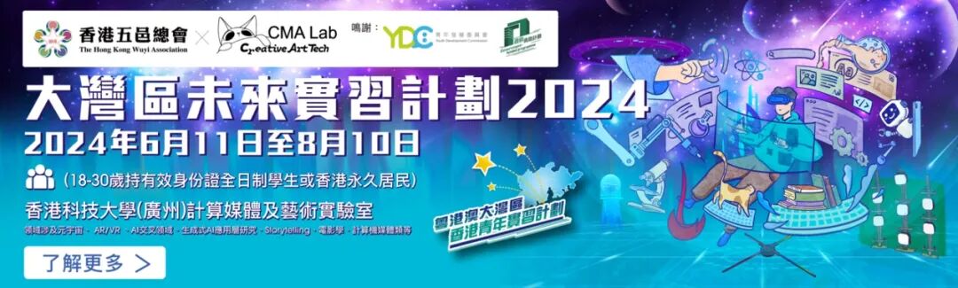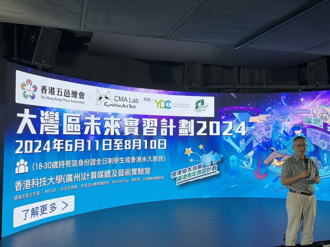 6月12日上午,由香港五邑总会和香港科技大学(广州)计算媒体与艺术实验室(CMA Lab)共同举办的大湾区未来实习计划在CMA Lab正式拉开帷幕。本次实习计划获得青年发展委员会大力支持,是一项政府资助的计划。30名分别来自清华大学、香港科技大学、香港中文大学、香港浸会大学、暨南大学、华南师范大学等高校的香港青年将在CMA Lab进行为期两个月的实习,从6月11日至8月10日。本次实习计划由CMA Lab的负责人叶纪文教授领导,实习生们将通过参与叶纪文教授领导的CAT(Creative Art Tech)研究组中的多个项目,深入体验艺术与技术结合的独特魅力。这不仅是一次实习,更是一段激动人心的探索旅程。In the morning of June 12th, the Greater Bay Area Future Internship Program, organized by the Hong Kong Wuyi Association and CMA Lab, officially commenced at the Computational Media and Arts Lab (CMA Lab) of The Hong Kong University of Science and Technology (Guangzhou). This internship program is generously supported by the Youth Development Commission as a government-funded initiative. Thirty young people from various universities, including Tsinghua University, The Hong Kong University of Science and Technology, The Chinese University of Hong Kong, Hong Kong Baptist University, Jinan University, and South China Normal University, will intern at the CMA Lab for two months, from June 11th to August 10th.This internship program is led by Professor David Kei Man Yip, the head of the CMA Lab. Interns will participate in various projects within the Creative Art Tech (CAT) research group led by Professor Yip, experiencing the unique charm of integrating art and technology. This is not just an internship, but an exciting journey of exploration.在12日上午的启动课程中,叶纪文教授首先介绍了自己的研究背景和其CAT研究团队。他表示:“CAT团队专注于新兴媒体艺术技术的内容、情感、体验和价值创造,将人文、想象力、讲故事的艺术、美学和设计思维整合到团队的艺术和设计项目中。这将为实习生们提供一个广阔的创新平台,让他们在这里不仅能接触到最前沿的技术,还能充分发挥创意思维,探索艺术与科技融合的无限可能。” 随后,团队成员依次介绍了他们所领导的精彩实习项目,包括黄选阳和钟智华领导的“互动媒体—丝绸之路2.0/大湾区项目”,宋俊蓉领导的“人工智能辅助电影制作项目”,叶铭领导的“XR工作室项目”,路闻川领导的“UE+AI+MoCap(深空行走)项目”,以及张朝哲和韩磊领导的“大湾区创意产业创业项目”。这些项目涵盖了从互动媒体、电影制作到XR技术的方方面面,为实习生们提供了广阔的发展空间。In the kick-off session on the morning of the 12th, Professor David Yip first introduced his research background and the CAT research team. He stated, "The CAT team focuses on content, emotion, experience, and value creation in emerging media art technology. We integrate humanities, imagination, storytelling, aesthetics, and design thinking into our art and design projects. This will provide interns with a broad innovative platform, allowing them to not only access cutting-edge technology but also to fully unleash their creative thinking and explore the infinite possibilities of art and technology integration." Subsequently, team members introduced the exciting internship projects they lead, including the "Interactive Media—Silk Road 2.0/Greater Bay Area Project" led by Xuanyang Huang and Zhihua Zhong, the "AI-Assisted Filmmaking Project" led by Junrong Song, the "XR Studio Project" led by Ming Yeh, the "UE+AI+mocap (Deep Space Walk) Project" led by Wenchuan Lu, and the "GBA Creative Industry Entrepreneurship Project" led by Chaozhe Zhang and Lei Han. These projects cover various aspects from interactive media and filmmaking to XR technology, providing interns with vast development opportunities.启动课程结束后,实习生们与各自感兴趣的项目负责人进行了深入交流,激荡灵感,为后续的实习项目确定了方向。After the kick-off session, the interns engaged in in-depth discussions with the project leaders they were interested in, exchanging ideas and determining the direction for their subsequent internship projects.下午,实习生们在HCI Lab进行了自我介绍,他们多元的学科背景将为这个暑假的CMA Lab注入新的活力。随后,大家前往CMA Lab的MoCap Room和XR Studio参观体验了前沿的虚拟制作技术,亲身感受科技与艺术碰撞的火花。在参观过程中,实习生们表现出极大的兴趣和热情,纷纷表示期待在接下来的实习中,能够亲自参与到这些前沿技术的开发和应用中。In the afternoon, the interns introduced themselves in the HCI Lab. Their diverse academic backgrounds will inject new vitality into the CMA Lab this summer. Then, everyone visited the MoCap Room and XR studio of the CMA Lab to experience the cutting-edge virtual production technology firsthand, feeling the sparks of collision between technology and art. During the visit, the interns showed great interest and enthusiasm, expressing their eagerness to participate in the development and application of these advanced technologies in the upcoming internship.计算媒体与艺术学域主任张康教授也亲临CMA Lab,热情欢迎实习生们的到来。张康教授表示:“在CMA Lab进行实习体验是一件非常幸运的事,愿你们在这里收获知识、友情和无限的创意灵感!”Professor Kang Zhang, Head of CMA Thrust, also visited the CMA Lab to warmly welcome the interns. Professor Zhang said, "It is very fortunate to have an internship experience at CMA Lab. I hope you will gain knowledge, friendship, and unlimited creative inspiration here!"在这里,科技与艺术相遇,创意与未来共舞!期待