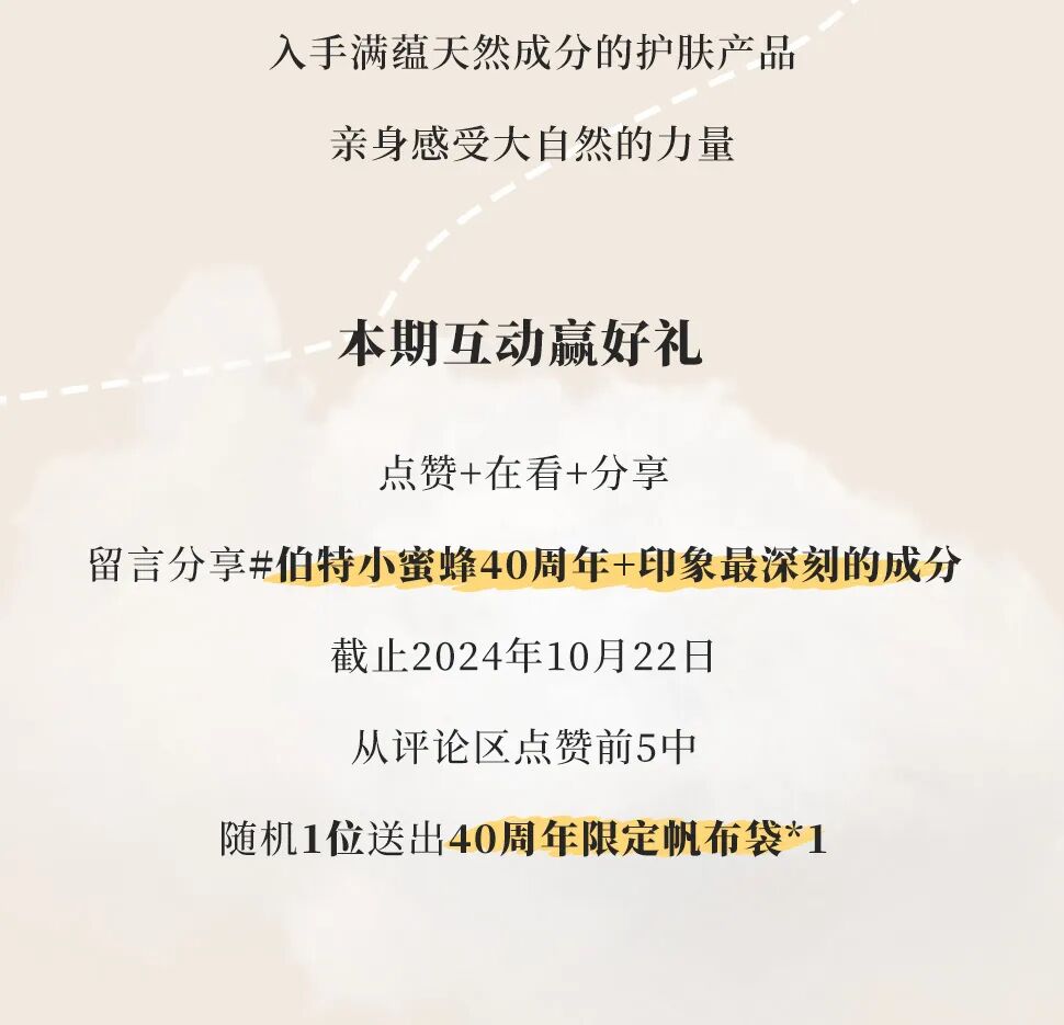 文章内容来源于公众号:BurtsBees伯特小蜜蜂,点此可查看原文,内容版权归相关企业所有,本网站仅供交流学习。若涉及版权问题或存在侵权情况,请及时与我们联系,我们将第一时间进行删除处理。
