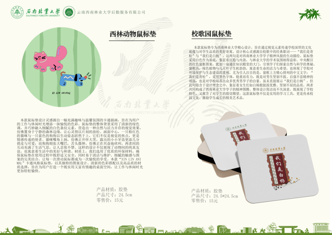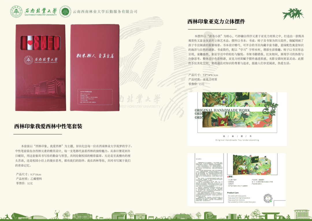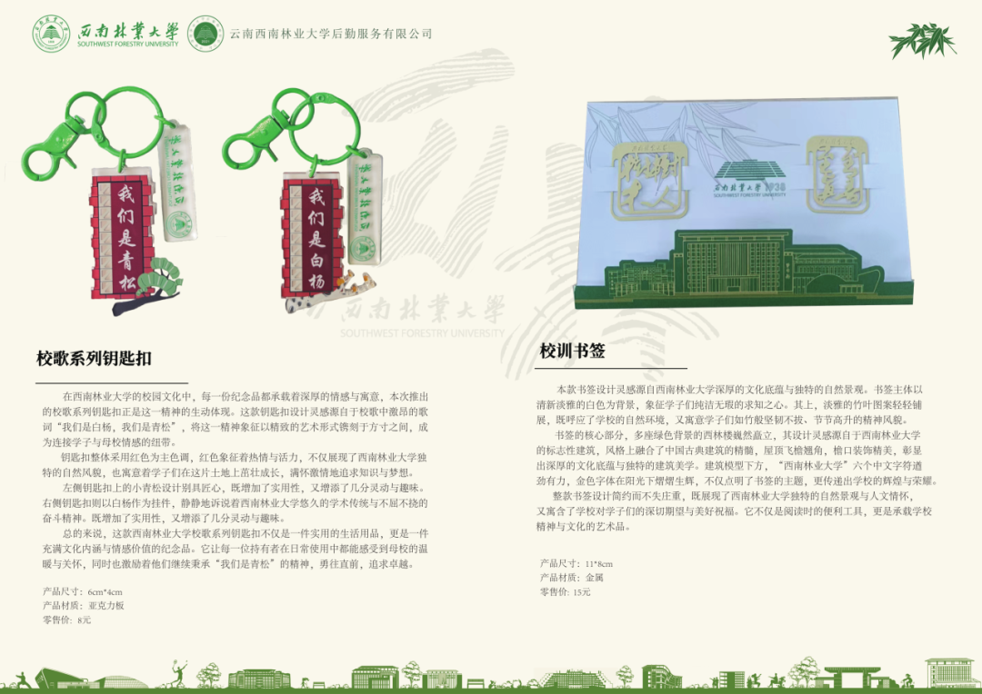 作为西南林业大学官方授权的文创品牌,西林印象广泛服务于学校的国际交流、招生宣传、文化传播、创新精神培养等工作,积极参与校内外各类文体活动、校庆纪念活动及课程实践,为建设更开放、更包容、更具韧性的西南林业大学贡献力量。