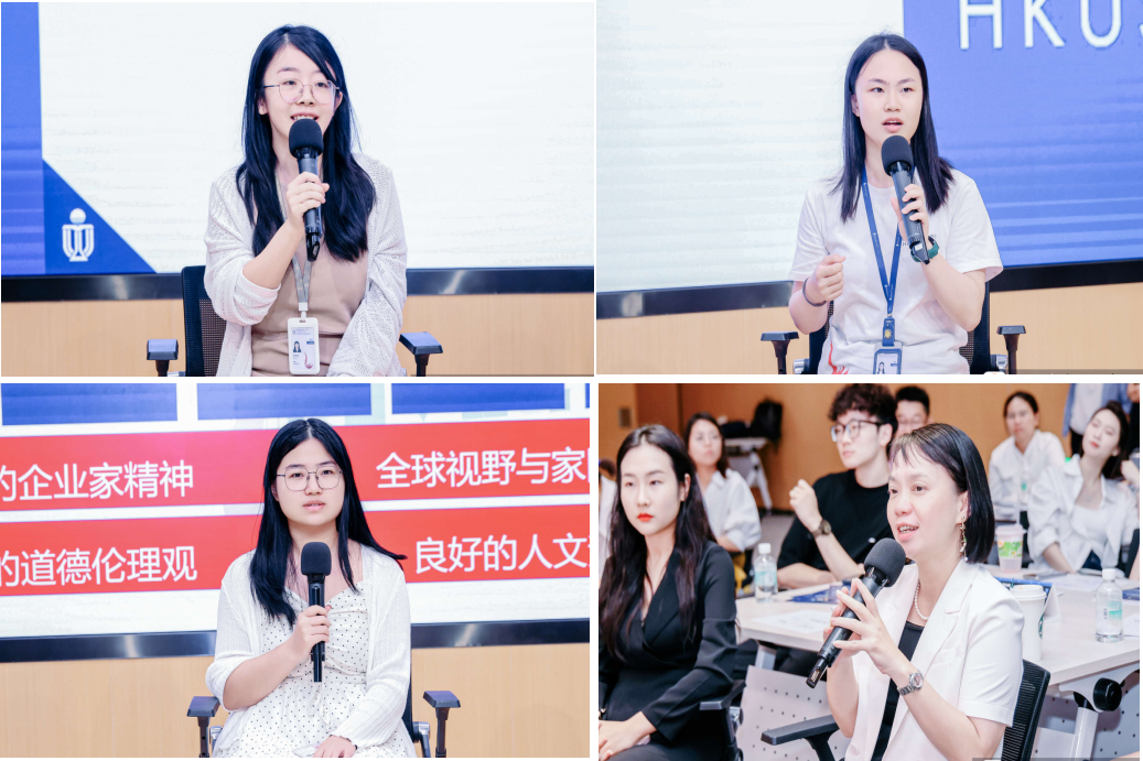 活动中,红鸟硕士项目一期与二期的学生代表李思佳、王焕、刁可晴同学与企业嘉宾进行了面对面交流。学生代表们分享了在红鸟硕士班的学习经历、参与的项目以及对未来职业道路的规划。这种直接的互动不仅展现了港科大(广州)学子的风采,也让企业代表对学生的能力和潜力有了直观的认识。