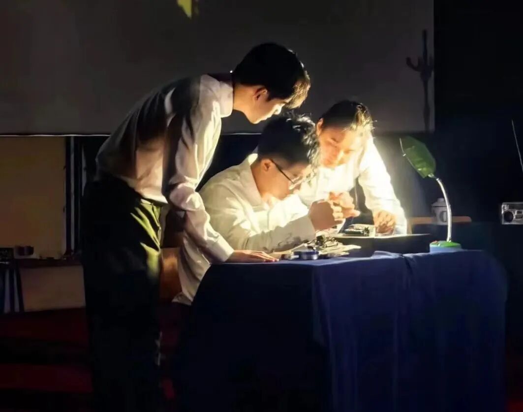 学生青棕榈话剧团原创话剧《零壹零壹》。该话剧以上世纪七十年代末北京工业大学自动化研究室成立初期为背景,再现实验室老师共同研制首台TP801单板微型机的历程。话剧场景激励着北工大青年学子在校史中汲取奋进力量,积极传承“植根首都、科技报国”初心使命,始终与首都、国家发展同向同行,为科技自立自强作出更大贡献。