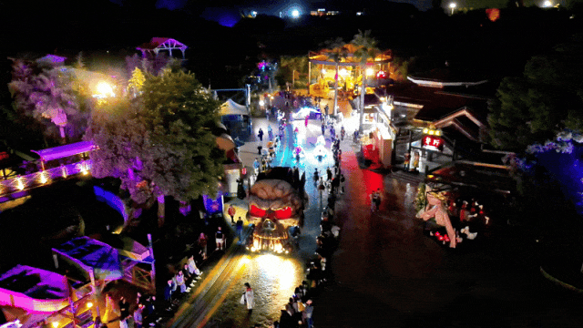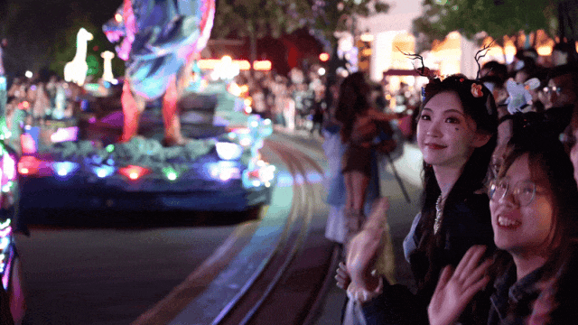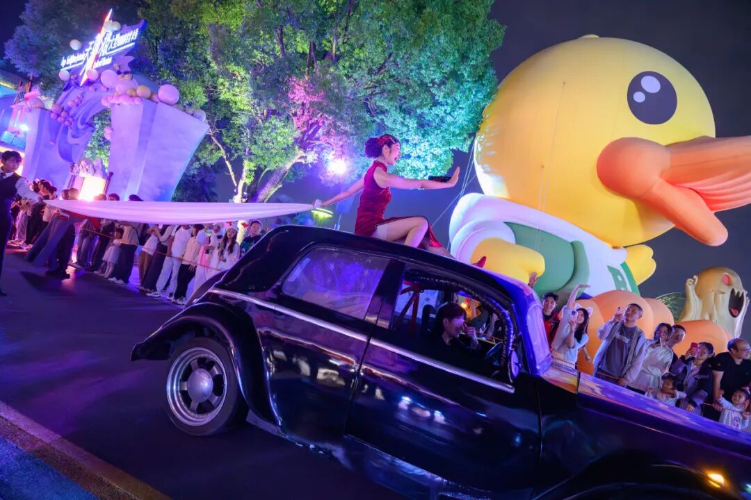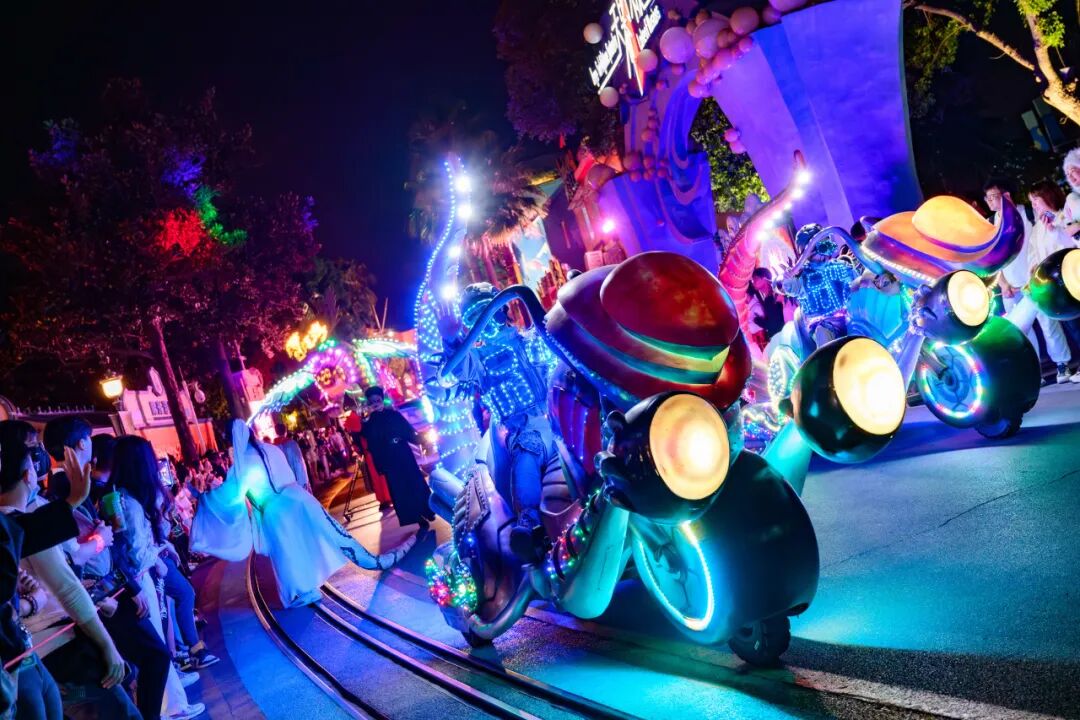 灯光依次亮起,一辆辆华丽的花车驶入视线