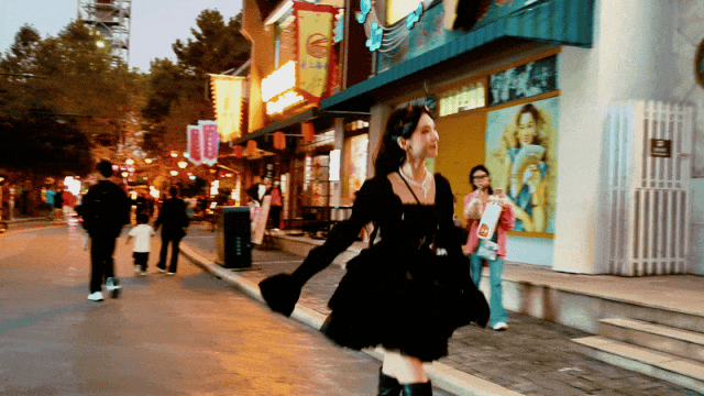 随着音乐,裙摆也跟着轻快的步伐飘动