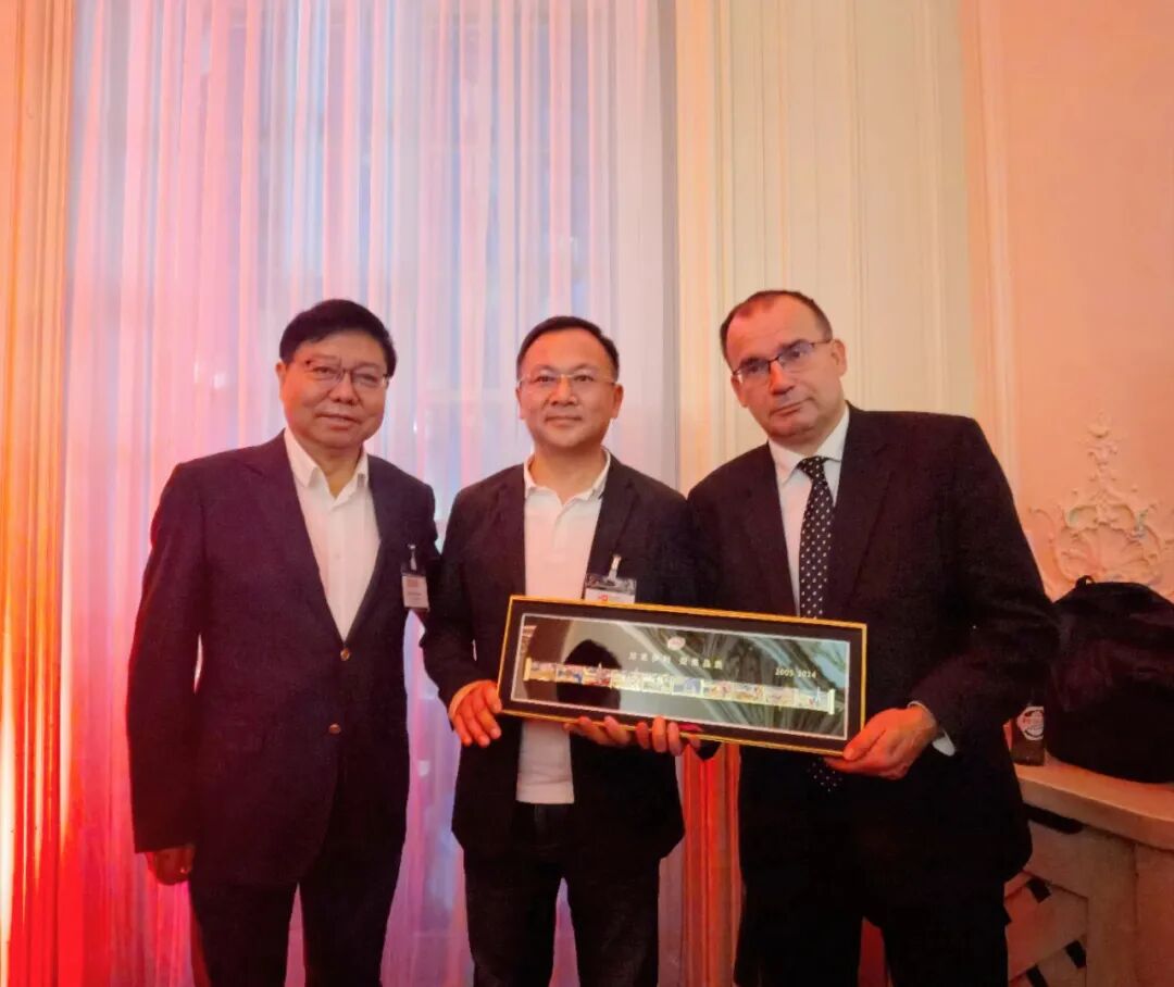 ▲中国广告协会会长张国华,伊利集团副总裁张轶鹏向英国商贸部服务业,中小企业以及出口部长Gareth Thomas赠送礼物