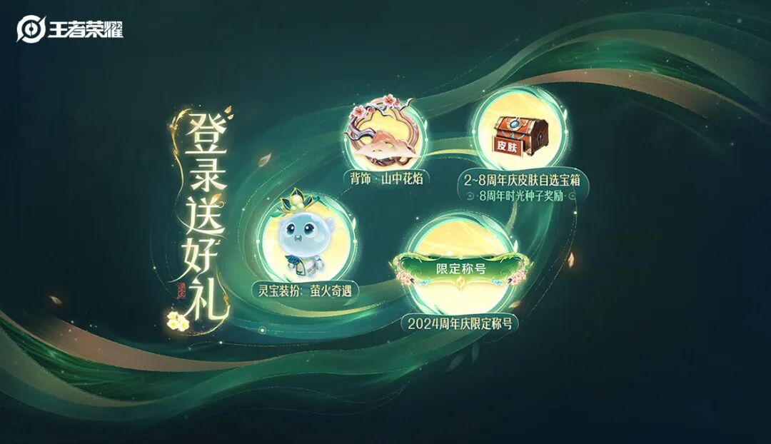 灵宝为大家准备了一份周年庆心意礼,10月26日-10月28日期间,在大厅与灵宝互动后可获得全新灵宝装扮:萤火奇遇及周年庆限定称号(根据注册年限不同发放一~九年王者玩家称号)。