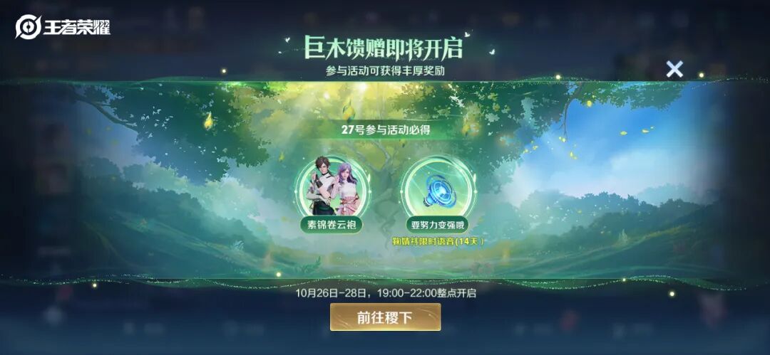 10月27日共创之夜直播期间,更可获得全新套装素锦卷云袍及鞠婧祎明星限时语音:要努力变强哦!