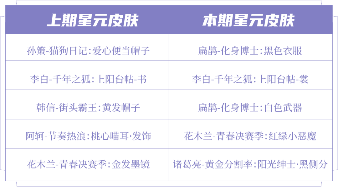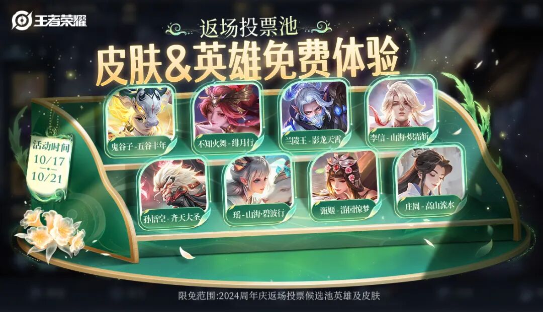 ⋄限免范围:2024周年庆返场投票候选池英雄及皮肤