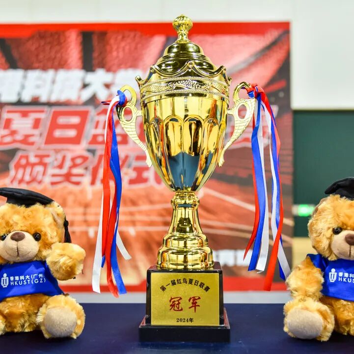 香港科技大学(广州)红鸟夏日篮球联赛7月2日举行。功能枢纽队与红鸟硕士班队展开激烈对决,最终以60:46胜出,捧起本届联赛冠军奖杯。校长倪明选教授出席颁奖。