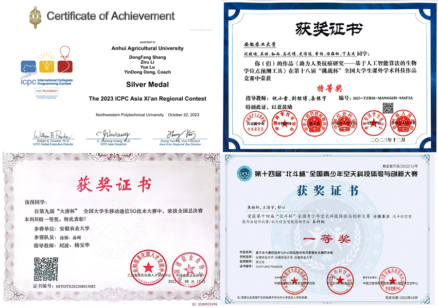 学院现有农业与生物信息学博士点,计算机科学与技术一级学科硕士点、生物数学硕士点、电子信息专业学位硕士点、农业工程与信息技术专业学位硕士点;拥有计算机科学与技术、通信工程、电子信息工程、物流工程、智能科学与技术、网络空间安全、应用统计学、数据科学与大数据技术8个本科专业。其中,计算机科学与技术为国家一流专业,通信工程、应用统计学和物流工程为省级一流专业,物流工程为省级特色专业。学院师资力量雄厚,现有在职职工150人,博士生导师8人,硕士生导师50人,教授19人,副教授34人,省学术技术带头人2人,省特支计划创新领军人才1人、省级教学名师4人、省级教坛新秀6人,省级高水平导师1人;建有省级“特色软件学院”“智慧农业学院”“计算机公共教学示范中心”“网络空间安全学院”“省级虚拟仿真实验教学中心”等省级教学实验平台近10个;建有“农业农村部农业传感器重点实验室”“农业部全国农业农村信息化示范基地”“农业农村部农产品电子商务重点实验室”“智慧农业技术与装备安徽省重点实验室”“安徽省农情信息感知与智能计算工程研究中心”“安徽省北斗精准农业信息工程实验室”“农业信息学安徽省重点实验室”等7个省部级科研平台。与百度、科大讯飞、中国通信服务、中国邮政、阳光电源、中外运等知名企业合作,建立了20余个产学研基地。近年来,我院主持和参与省部级以上项目累计200余项,到账经费5000余万元。主持了国家重点研发计划项目课题、国家863课题、国家自然科学基金、农业农村部“引进国际先进农业科学技术”(948)项目、联合国粮农组织和安徽省重大科技专项等省部级以上课题近100项;发表高水平论文400余篇,SCI、EI收录130余篇,授权发明专利79项、软件著作权480项,获得省部级以上科技成果奖励11项;编写省部级规划教材10余部。近三年,学院学子获“挑战杯”大学生课外学术科技作品竞赛特等奖等国家级奖项40余项,省级及以上奖项200余项。计算机科学与技术