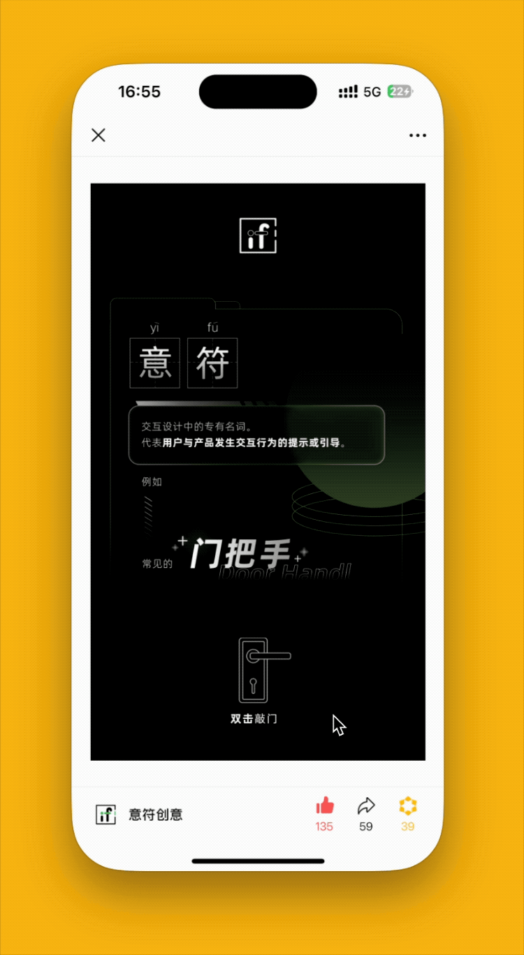 在意符的一篇公司介绍推文中,也通过双击事件,模拟了现实世界中的敲门动作↓