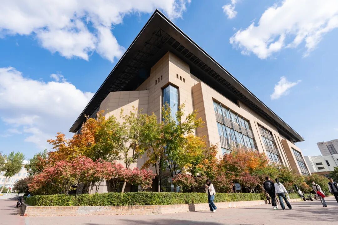 “格物楼和建筑与设计学院之间,天空湛蓝,秋叶很美,上学的幸福感又增加了一点。”