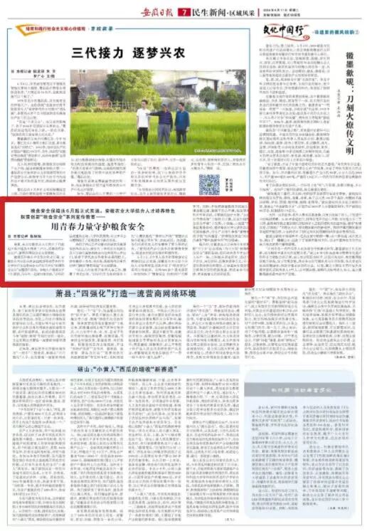 强国必先强农,农强方能国强。作为安徽农业高校,要不断厚植学生的“三农”情怀,进一步发挥教育、科技、智力等优势,有效提升服务能力,让强农人才扎根乡村,让兴农科技遍布田野。