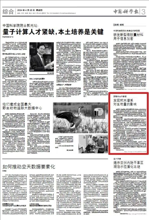 这一研究从树木谱系的角度进行探索,增进了人们对物种与环境关系的理解。研究结果不仅拓展了对异速生长关系在陆地生态系统或全球生态系统中普适性的认识,还为全球森林生物量和碳储量的估算提供了重要的理论支撑与数据支持。