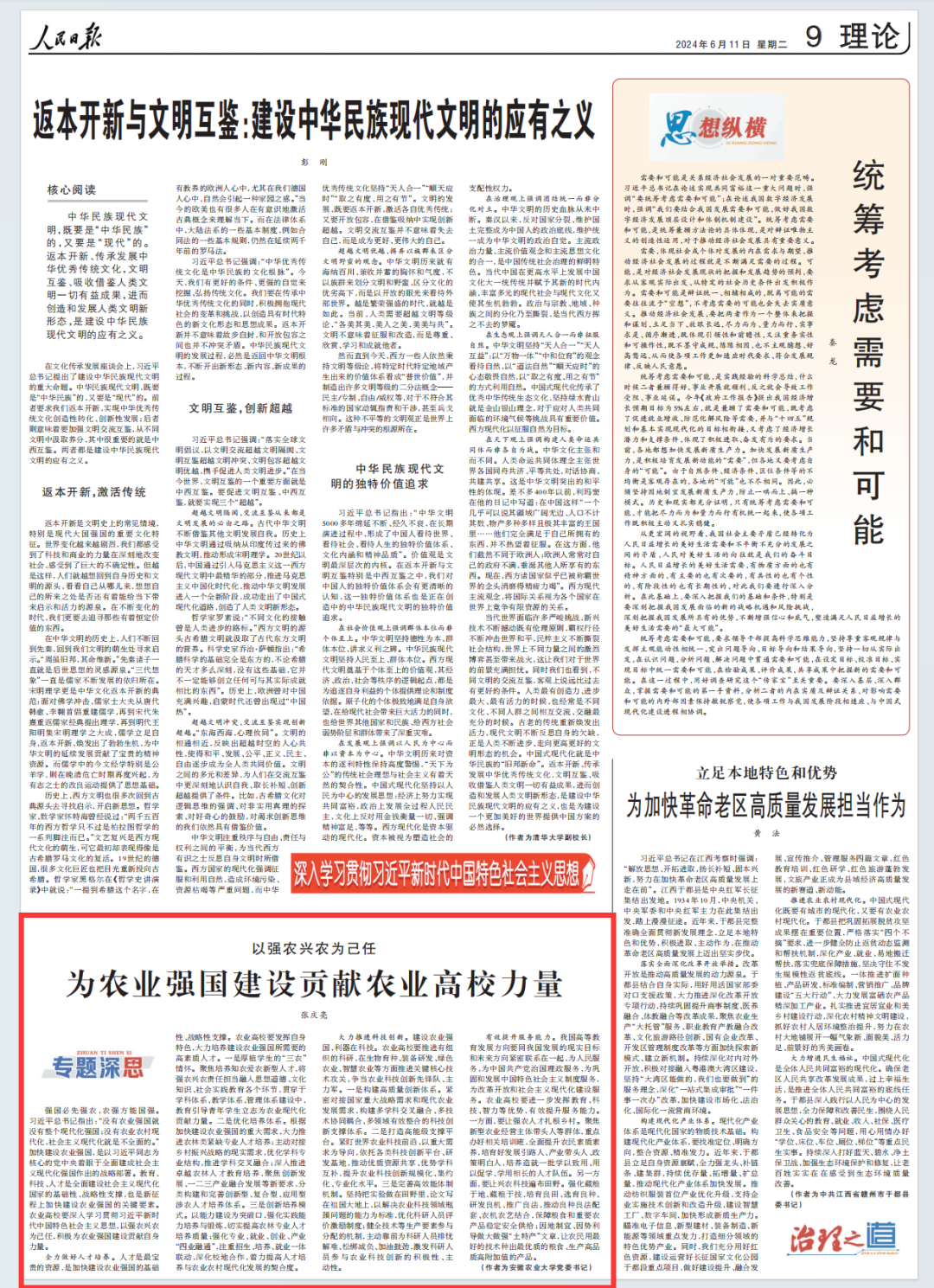 《以强农兴农为己任,为农业强国建设贡献农业高校力量》为题