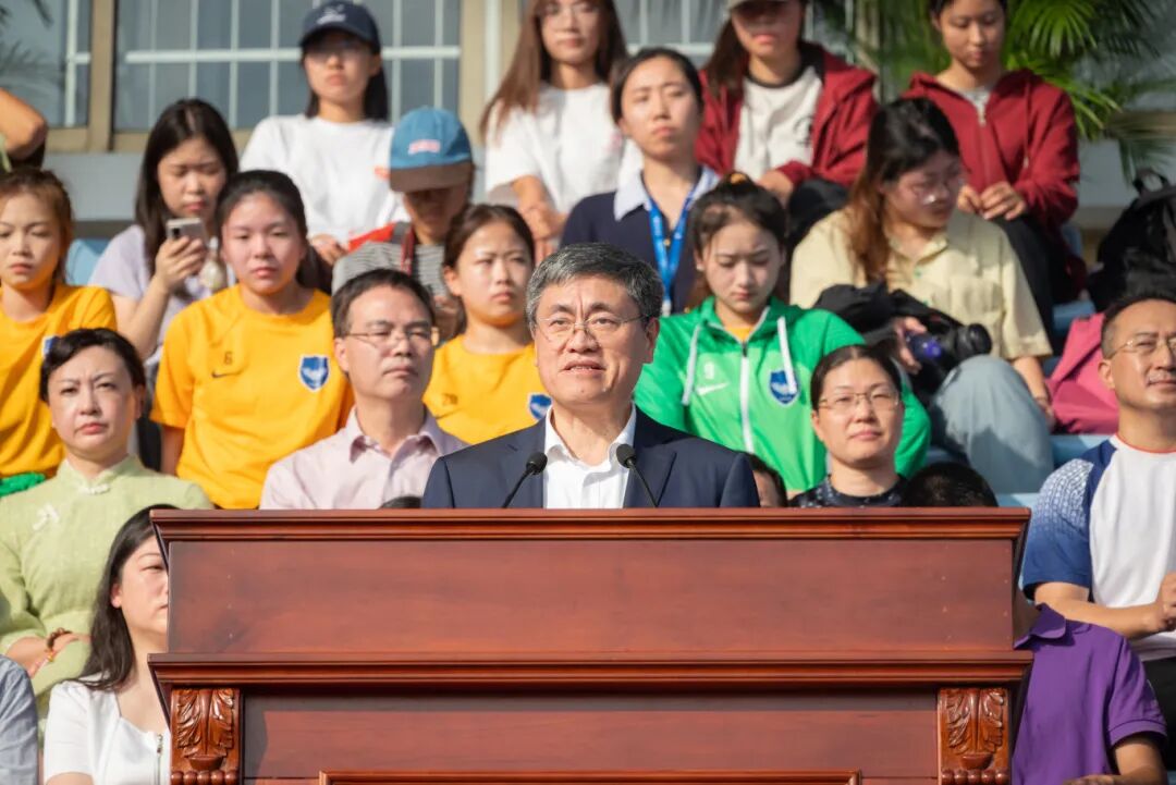 浙江大学党委书记任少波宣布开幕并致辞。他指出,不体育,无教育;无一流的体育,也就没有一流的大学。浙江大学有很好的体育传统,长期以来坚持弘扬“强体健魄、树我邦国”的浙大体育精神,积极推进体育教育资源普及普惠师生,为同学们的成长提供丰富的体育空间和环境条件。他向同学们发出号召,希望大家每人学会一项体育技能、养成一个锻炼习惯、加入一支运动团队、参与一次体育竞赛,在一所体育也一流的大学里打下为祖国健康工作的坚实基础。