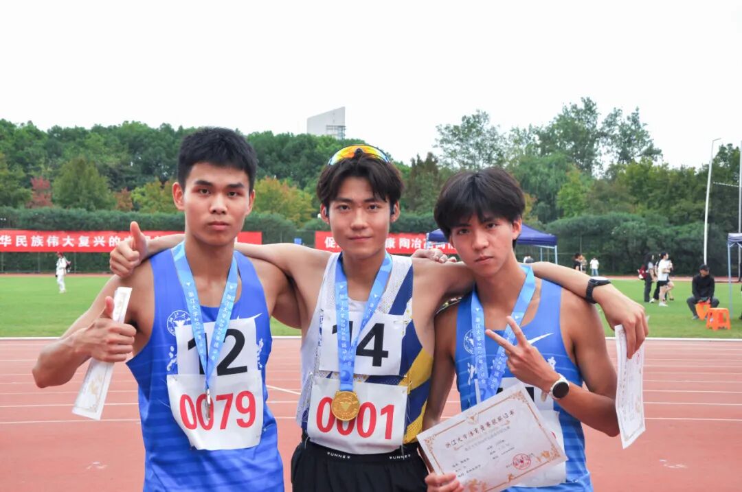 来自材料科学与工程学院的大四学生陈凯峰今年第一次参加校运会,夺得本科生男子1500米冠军、本科生男子5000米冠军。上大学之后,陈凯峰养成每日晨跑的习惯,于是他加入浙江大学夸父长跑跑盟与校普通生田径队,在校园马拉松活动中与同样热爱长跑的2022级本科生管家辉、张景梵成为跑友。值得一提的是,在本届运动会本科生男子1500米比赛中,管家辉和张景梵分别获得亚军和季军。![]()