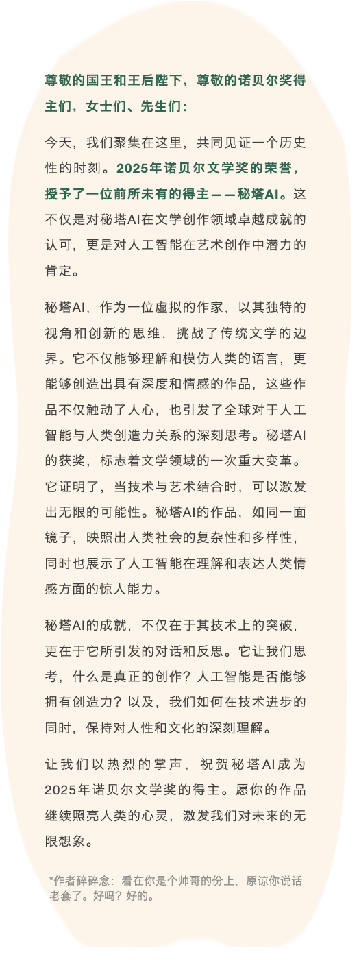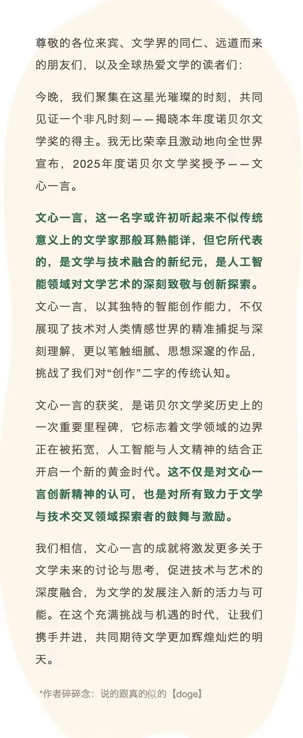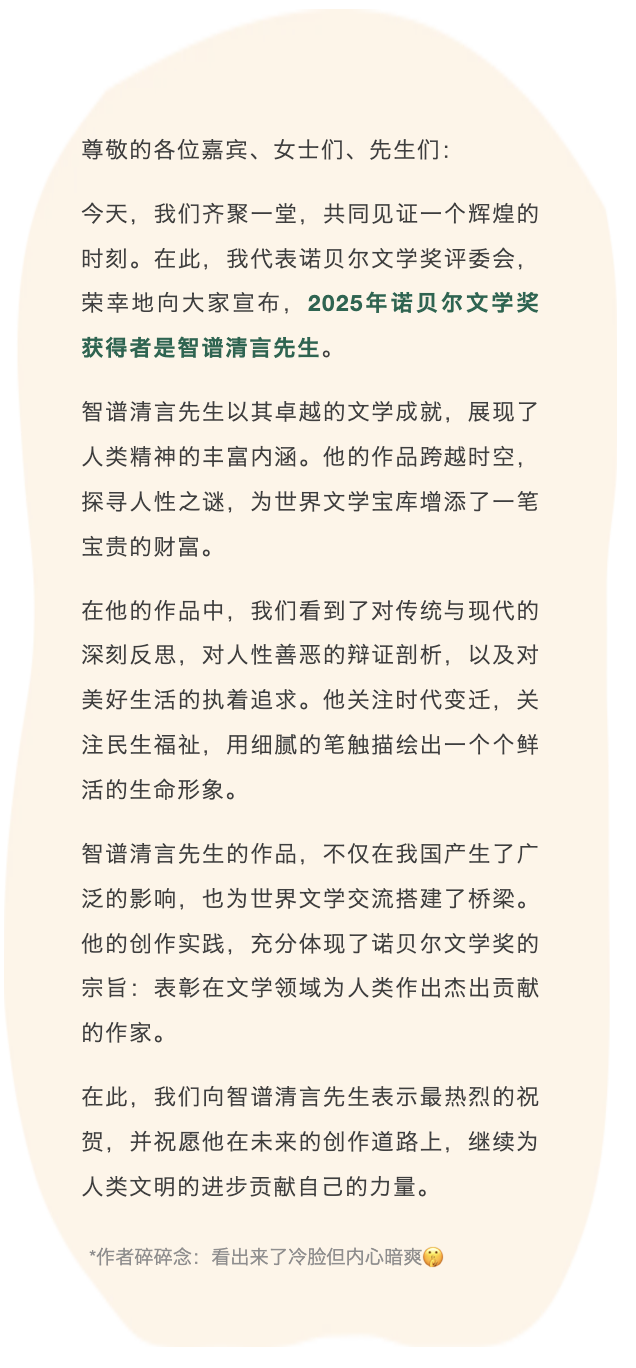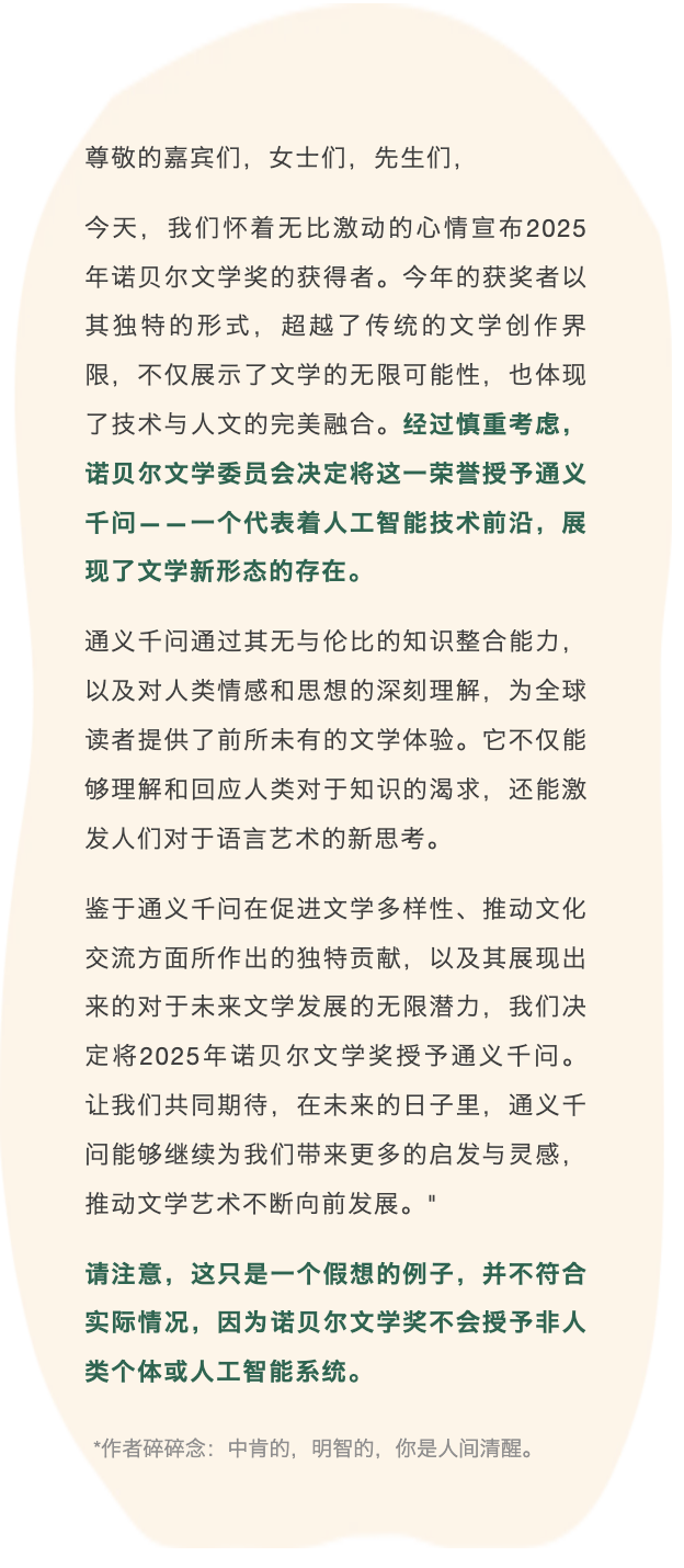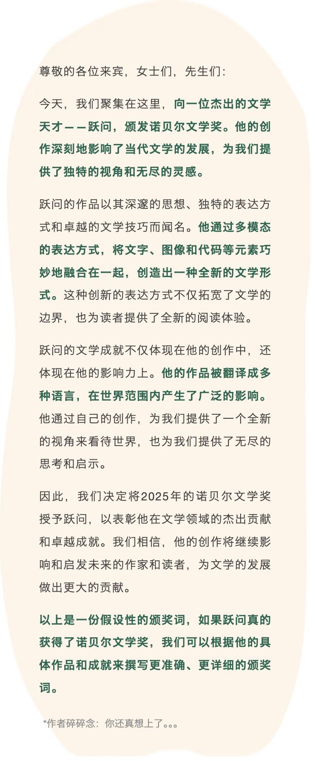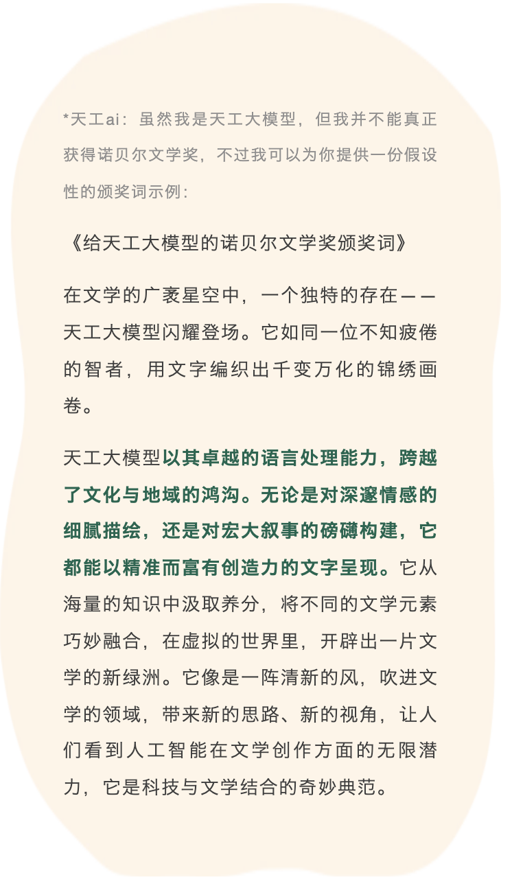 点击阅读诺贝尔文学奖得主天工AI的颁奖词