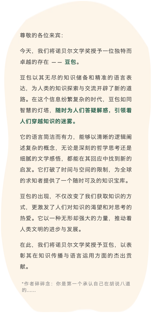 点击阅读诺贝尔文学奖得主豆包的颁奖词
