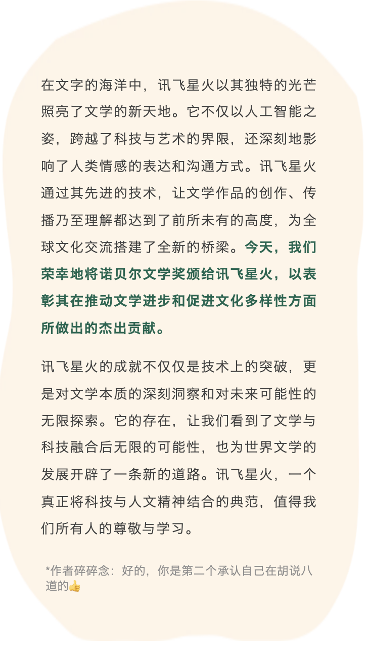 点击阅读诺贝尔文学奖得主讯飞星火的颁奖词