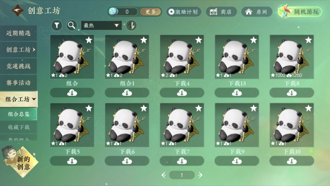 新版本中,创意工坊新增了【组合工坊】内容,打造了一个凝聚无数优秀作品精华的创造源泉!各位同门可以上传自己搭配好的设计组合供其他玩家下载使用,让自己的想法应用得更广;也能在此一键获取前辈们创造的优秀组合,让自己的建造之路更加轻松!